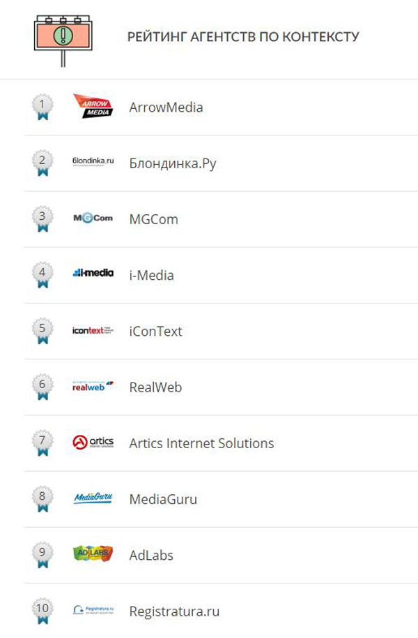 Для составления рейтинга опрос проводился между самими игроками рынка, т. е. среди компаний, оказывающих услуги по контекстной рекламе и продвижению сайтов. Компаниям предлагалось ответить на вопросы по телефону или заполнив электронную анкету. Чем больше конкурентов назвали определенную компанию, тем больший рейтинговый балл она получила.