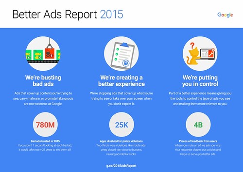 Компания Google опубликовала свой ежегодный отчет «Bad Ads» (переименованный в этом году в «Better Ads»). Данный отчет посвящен борьбе с рекламными объявлениями, нарушающими правила компании.