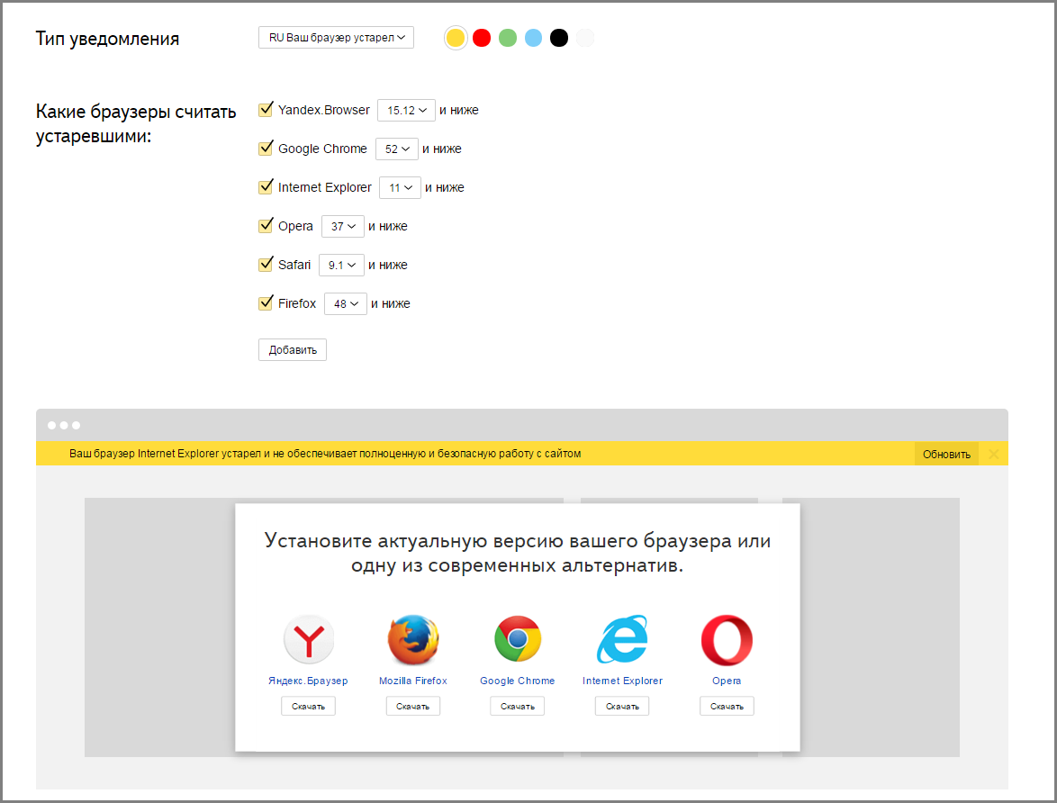 Компания Яндекс сообщила о запуске нового инструмента для веб-мастеров - Конструктора обновления браузеров. Цель данного сервиса – помочь разработчикам и владельцам сайтов с адаптацией веб-ресурсов под устаревшие браузеры.