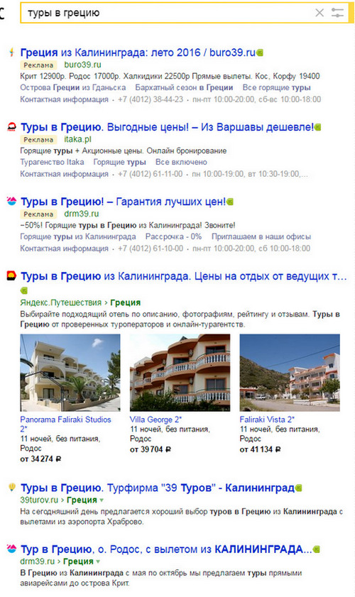 На данный момент объявления Директа можно отличить от основной выдачи с помощью слова «Реклама», вынесенного под заголовком и отмеченного заливкой.