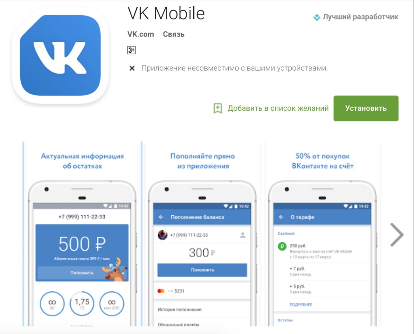 Приложение VK Mobile работает по сути так же, как и любой другой оператор сотовой связи. Но в приложении имеется возможность получения кэшбека на счет оператора от покупок у партнеров. Более подробной информации о сервисе пока нет.